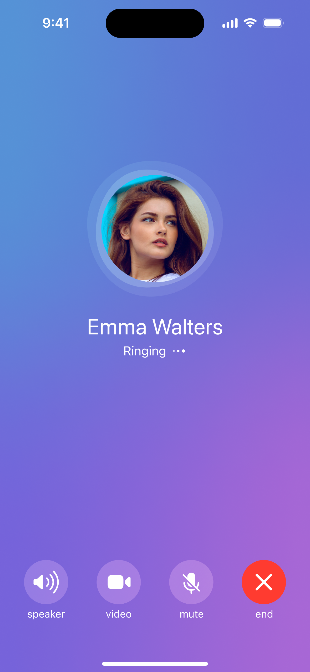 - Initiating Call. When a call is being initiated, the app should start an animation cycle with a “Blue-Violet” background.