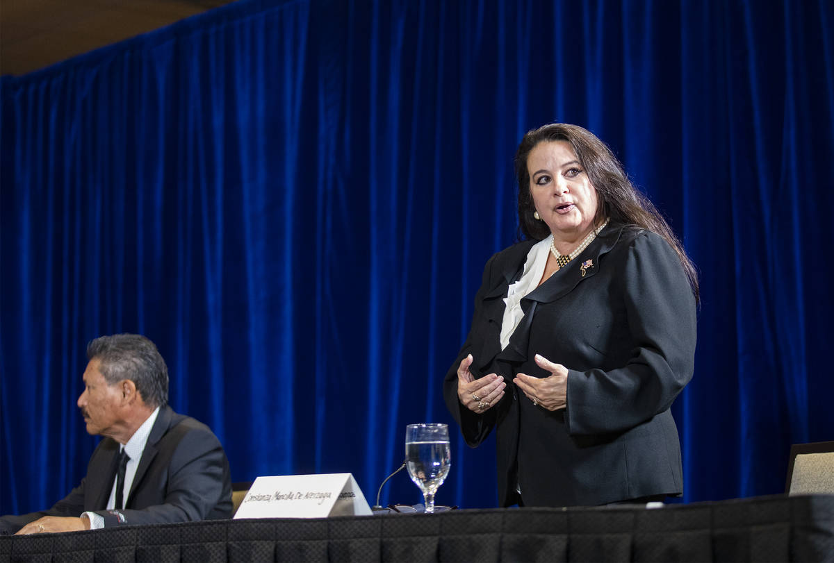 “I know for a fact that he’s not racist because I’m an American Mexican Jew,” Constanza Mancilla de Areizaga told the group. She then spoke of how Democrats, specifically former President Barack Obama previously and Gov. Steve Sisolak now, have “sabotaged” her business, which puts on major corporate events.