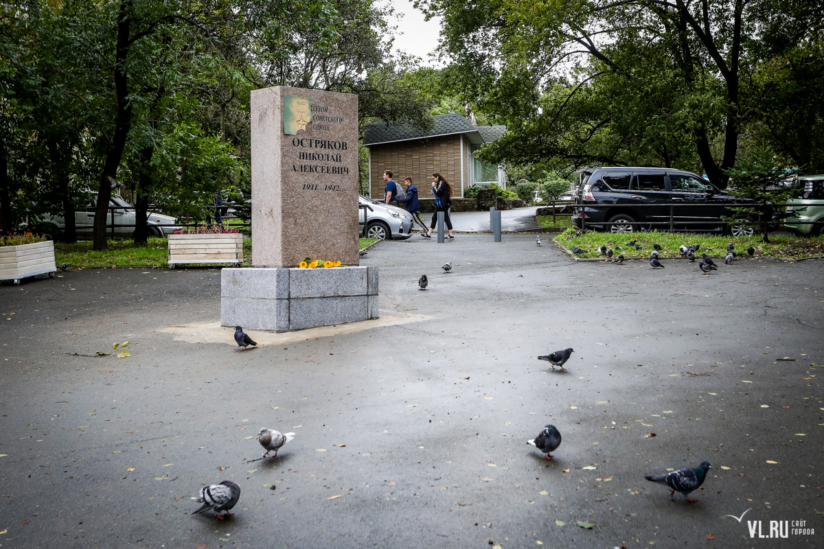 На прошедших выходных жители Владивостока обнаружили, что в сквере Острякова, который находится на пересечении двух проспектов – Острякова и Океанского, появился новый памятник. По виду он напоминает надгробную плиту с могилы невостребованного тела – здесь есть только ФИО знаменитого лётчика и годы жизни, без точных дат рождения и смерти и фотографии. В пресс-службе администрации Владивостока уточняют, что это не окончательный вид монумента, а только постамент для бюста, который планируют установить до конца недели. В «Дирекции общественных пространств» место установки не согласовывали.